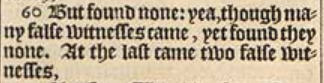 60 But found none: yea, though many false witnesses came, yet found they none. At the last came two false witnesses,