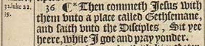36 ¶ *Then commeth Iesus with them vnto a place called Gethsemane, and saith vnto the Disciples, Sit yee heere, while I goe and pray yonder.[*Marke 14.32. luke 22. 39.]