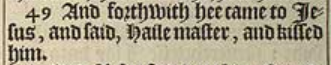 49 And forthwith hee came to Iesus, and said, Haile master, and kissed him.