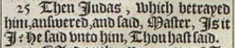 25 Then Iudas, which betrayed him, answered, and said, Master, Is it I? He said vnto him, Thou hast said.