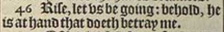 46 Rise, let vs be going: behold, he is at hand that doeth betray me.