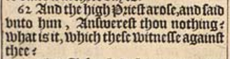 62 And the high Priest arose, and said vnto him, Answerest thou nothing? what is it, which these witnesse against thee?