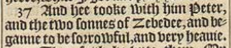 37 And hee tooke with him Peter, and the two sonnes of Zebedee, and beganne to be sorrowful, and very heauie.