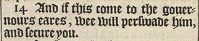 14 And if this come to the gouernours eares, wee will perswade him, and secure you.