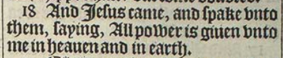 18 And Iesus came, and spake vnto them, saying, All power is giuen vnto me in heauen and in earth.