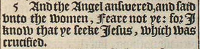 5 And the Angel answered, and said vnto the women, Feare not ye: for I know that ye seeke Iesus, which was crucified.