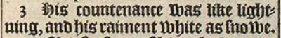 3 His countenance was like lightning, and his raiment white as snowe.