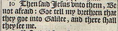 10 Then said Iesus vnto them, Be not afraid: Goe tell my brethren that they goe into Galilee, and there shall they see me.
