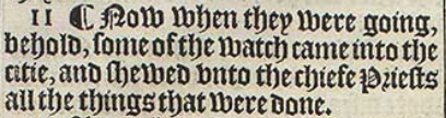 11¶ Now when they were going, behold, some of the watch came into the citie, and shewed vnto the chiefe Priests all the things that were done.