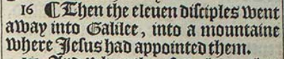 16 ¶ Then the eleuen disciples went away into Galilee, into a mountaine where Iesus had appointed them.