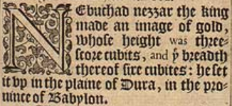 1 Nebuchad-nezzar the king made an image of gold, whose height was threescore cubits, and þe breadth thereof sixe cubites: he set it vp in the plaine of dura, in the prouince of Babylon.