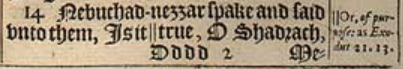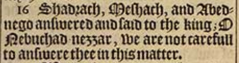 16 Shadrach, Meshach, and Abednego answered and said to the king; O Nebuchad-nezzar, we are not carefull to answere thee in this matter.