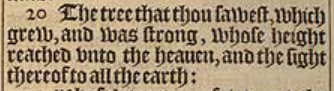 20 The tree that thou sawest, which grew, and was strong, whose height reached vnto the heauen, and the sight thereof to all the earth: