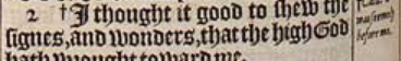 2 +I thought it good to shew the signes, and wonders, that the high God hath wrought toward me. [ + Cald. it was seemely before me. ]