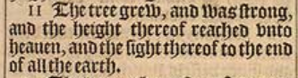 11 The tree grew, and was strong, and the height thereof reached vnto heauen, and the sight thereof to the end of all the earth.