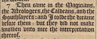 7 Then came in the Magicians, the Astrologers, the Caldeans, and the Southsayers: and I tolde the dreame before them; but they did not make knowen vnto mee the interpretation thereof.