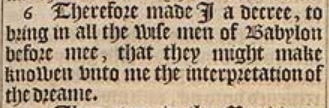6 Therefore made I a decree, to bring in all the wise men of Babylon before mee, that they might make knowen vnto me the interpretation of the dreame.