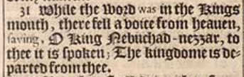 31 While the word was in the Kings mouth, there fell a voice from heauen, saying, O King Nebuchad-nezzar, to thee it is spoken; The kingdome is departed from thee.