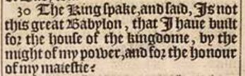 30 The King spake, and said, Is not this great Babylon, that I haue built for the house of the kingdome, by the might of my power, and for the honour of my maiestie?