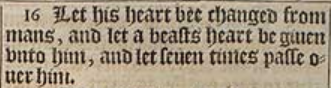 16 Let his heart bee changed from mans, and let a beasts heart be giuen vnto him, and let seuen times passe ouer him.