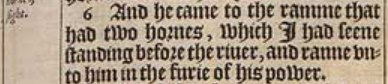 6 And he came to the ramme that had two hornes, which I had seene standing before the riuer, and ranne vnto him in the furie of his power.