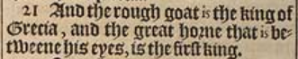 21 And the rough goat is the king of Grecia, and the great horne that is betweene his eyes, is the first king.