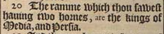 20 The ramme which thou sawest hauing two hornes, are the kings of Media, and Persia.