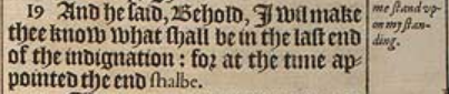 19 And he said, Behold, I wil make thee know what shall be in the last end of the indignation: for at the time appointed the end shalbe.