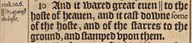 10 And it waxed great euen || to the hoste of heauen, and it cast downe some of the hoste, and of the starres to the ground, and stamped vpon them. [ || Or, against the hoste. ]