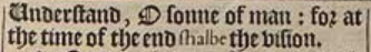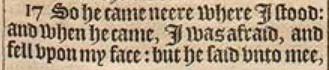 17 So he came neere where I stood: and when he came, I was afraid, and fell vpon my face: but he said vnto mee, Understand, O sonne of man: for at the time of the end shalbe the vision.
