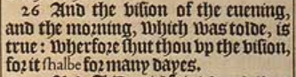 26 And the vision of the euening, and the morning, which was tolde, is true: wherfore shut thou vp the vision, for it shalbe for many dayes.