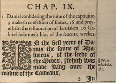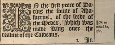 1 In the first yeere of Darius the sonne of Ahasuerus, of the seede of the Medes, || which was made King ouer the realme of the Caldeans, [ || Or, in which he, &c. ]