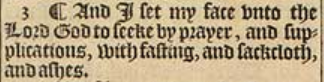 3 ¶ And I set my face vnto the Lord God to seeke by prayer, and supplications, with fasting, and sackcloth, and ashes.