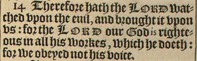 14 Therefore hath the LORD watched vpon the euil, and brought it vpon vs: for the LORD our God is righteous in all his workes, which he doeth: for we obeyed not his voice.