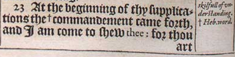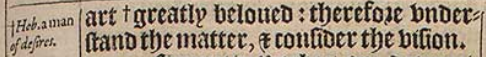 23 At the beginning of thy supplications the + commandement came forth, and I am come to shew thee: for thou art +greatly beloued: therefore vnderstand the matter, & consider the vision. [ +Heb. word. , +Heb. a man of desires. ]