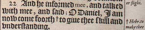 22 And he informed mee, and talked with mee, and said; O Daniel, I am now come foorth + to giue thee skill and vnderstanding. [ +Hebr. to make thee skilfull of vnderstanding. ]