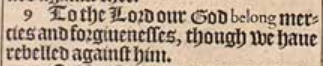 9 To the Lord our God belong mercies and forgiuenesses, though we haue rebelled against him.