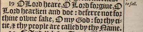 19 O Lord heare, O Lord forgiue, O Lord hearken and doe: deferre not for thine owne sake, O my God: for thy citie, & thy people are called by thy Name.