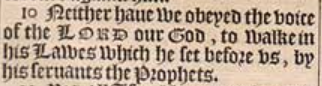 10 Neither haue we obeyed the voice of the LORD our God, to walke in his Lawes which he set before vs, by his seruants the Prophets.