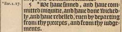 5 *We haue sinned, and haue committed iniquitie, and haue done wickedly, and haue rebelled, euen by departing from thy precepts, and from thy iudgements. [ *Bar.1. 17. ]