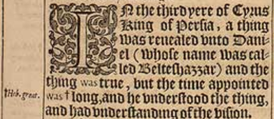 1 In the third yere of Cyrus King of Persia, a thing was reuealed vnto Daniel (whose name was called Belteshazzar) and the thing was true, but the time appointed was +long, and he vnderstood the thing, and had vnderstanding of the vision. [ +Heb. great. ]