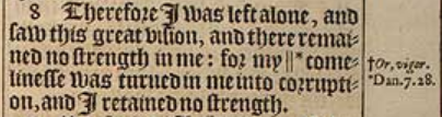 8 Therefore I was left alone, and saw this great vision, and there remained no strength in me: for ||*my comelinesse was turned in me into corruption, and I retained no strength.