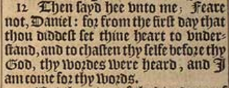 12 Then sayd hee vnto me; Feare not, Daniel: for from the first day that thou diddest set thine heart to vnderstand, and to chasten thy selfe before thy God, thy wordes were heard, and I am come for thy words.