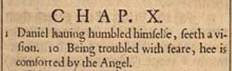 1 Daniel, Demut zeigend, sieht eine Vision. 10 Beunruhigt in Angst, wird er von dem Engel beruhigt.