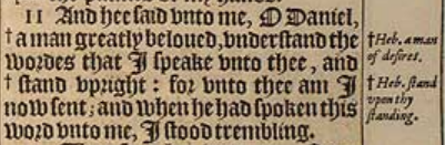 11And hee said vnto me, O Daniel, +a man greatly beloued, vnderstand the wordes that I speake vnto thee, and +stand vpright: for vnto thee am I now sent; and when he had spoken this word vnto me, I stood trembling. [ +Heb. a man of desires. , +Heb. stand vpon thy standing. ]