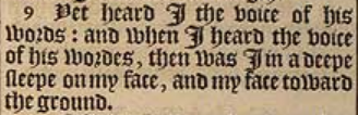 9 Yet heard I the voice of his words: and when I heard the voice of his wordes, then was I in a deepe sleepe on my face, and my face toward the ground.