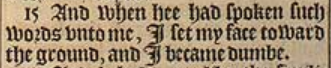 15 And when hee had spoken such words vnto me, I set my face toward the ground, and I became dumbe.