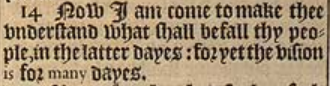 14 Now I am come to make thee vnderstand what shall befall thy people, in the latter dayes: for yet the vision is for many dayes.