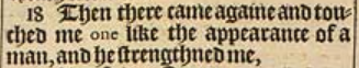 18 Then there came againe and touched me one like the appearance of a man, and he strengthned me,