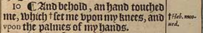 10 ¶ And behold, an hand touched me, which +set me vpon my knees, and vpon the palmes of my hands. [+Heb. mooued. ]